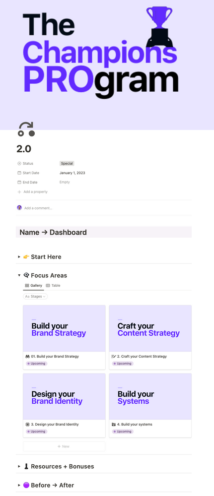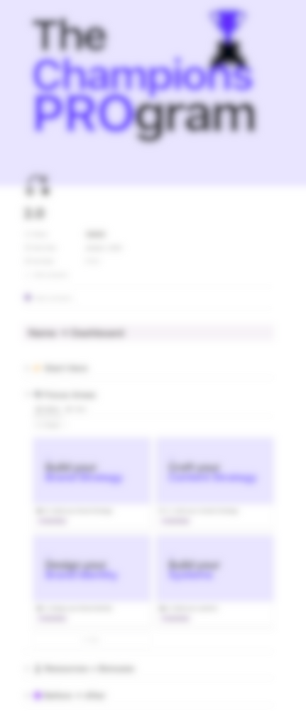 The program is built to deliver a premium experience, and help you focus on getting things crafted + set up, so you champion your way to success.